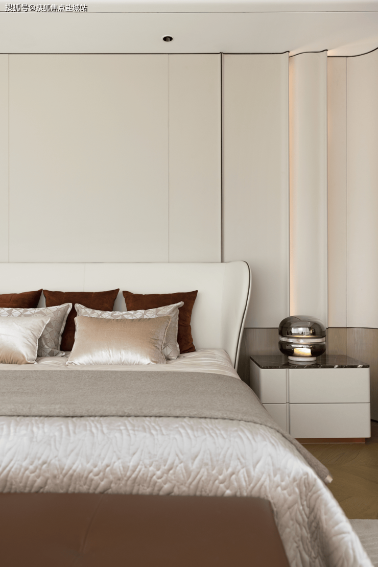 主卧来自Eda-Mame 的艺术躺椅,以弯曲和蜿蜒的线条为特征,宛如母亲的怀抱,温馨而舒适;个性创意的设计与高雅简约的色调自成意趣,彰显主人的艺术品味与生活情致。长辈房是怀旧与现代的交融。