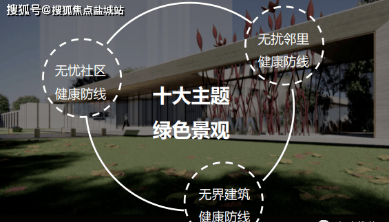 境取自然风华 绿色健康复合社区(在“一环、二轴、多组团”的总体布局下,分布十大主题场景,同时社区由外至内构筑三道健康防线,为居者缔造全天候安全悦居空间)