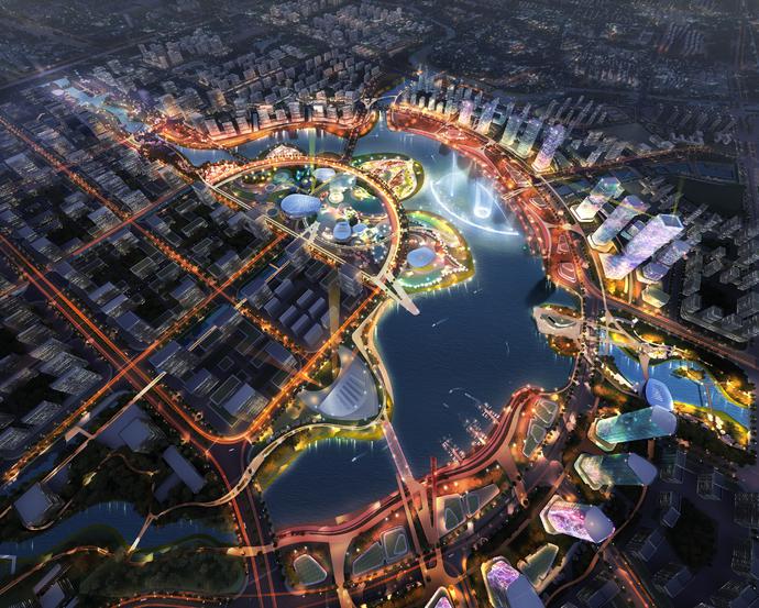 环湖商务商贸区以高端商贸、文化旅游、总部经济和商务服务等产业为主,打造功能复合的环湖创意活力街区。重点引进国际品牌连锁酒店、主题特色街区、街景式购物中心等新型商业综合体,招引知名企业集团设立区域性总部、营销中心、运营中心。布局会展演艺、影视动漫、科创服务、管理咨询等文创项目,举办游艇、帆船、龙舟等水上运动赛事和表演。