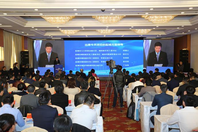盐城市人大常委会副主任、城南新区党工委书记周键云为推介会致辞,盐城市城南新区开发建设投资有限公司副总经理李佩建作南海未来城产业投资推介,上海宏发投资等公司负责人作代表发言。
