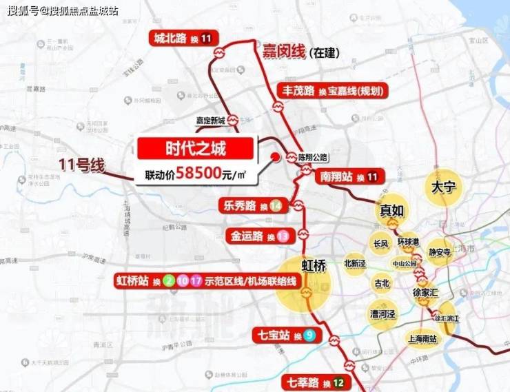 项目直距地铁11号线陈翔公路站约900米,可快速链接徐汇、浦东、前滩等地;近嘉闵线南翔站(在建),4站即达虹桥;更与沃尔玛山姆会员店(已开业),仅一路之隔,直距约34万方印象城MEGA约900米。