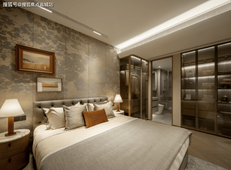 其二,主卧拥有270°转角飘窗和观景视野,这一般是豪宅项目中250㎡以上户型才有的配置。不仅是豪宅项目的配置下沉,更是整个南翔至今更具逼格的主卧。