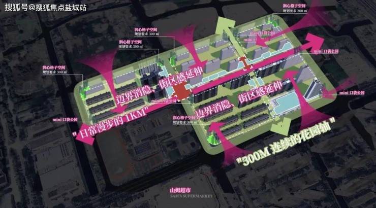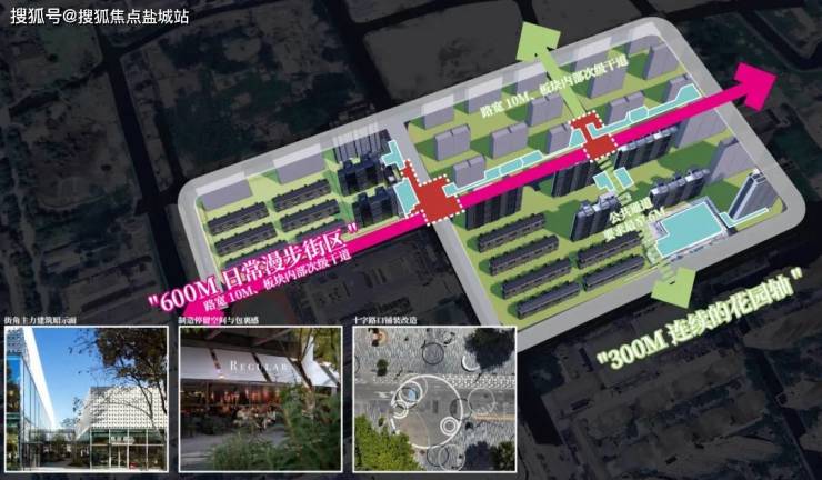 这些丰富的生活场景,则由两条景观轴线串联:一条是约300米的连续花园轴;一条是约600米的日常漫步街区。