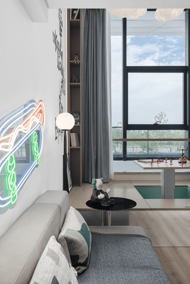 空间强烈的美学意象,是前卫与复古的碰撞与精炼,融洽质朴的生活底蕴,启迪具有人文性的灵性空间。入门一出灰、白、米三色交织的情境空间,勾勒出办公、会客、休闲的多元场域。恰当的留白与疏密对比,放大有限空间的格局,一如趋势青年以挑战者的姿态放眼世界,找寻生活的乐趣所在。
