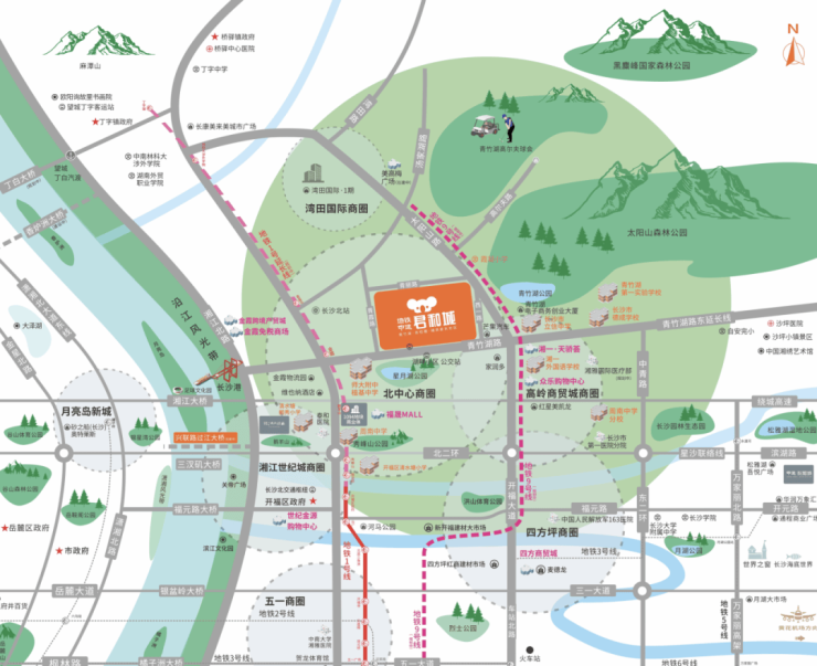 🏆片区唯一双国企央企中建&长沙轨道交通集团联袂打造,占据青竹湖板块金霞副中心,城北新城核心地带,长沙富人墅区集结地。