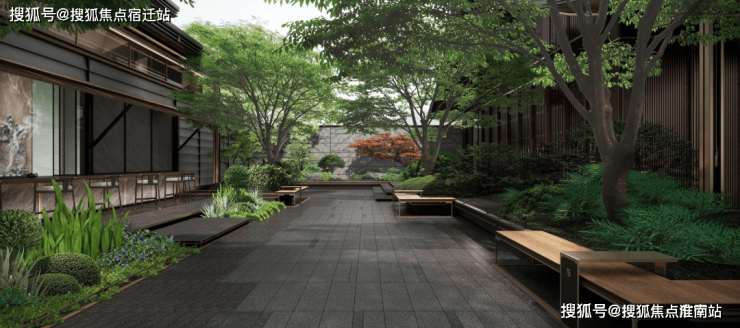 第二景风帘翠幕:进入青承门后是一方精致的芭蕉庭院,让业主有一个洗尘归心的宁静体验。
