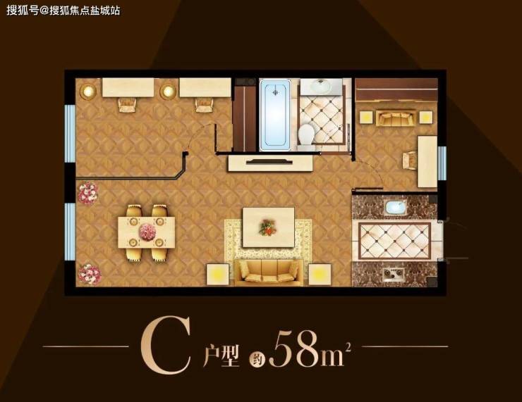 户型有38、39、42、50、56、58平(2房),得房率更是达到了81%。