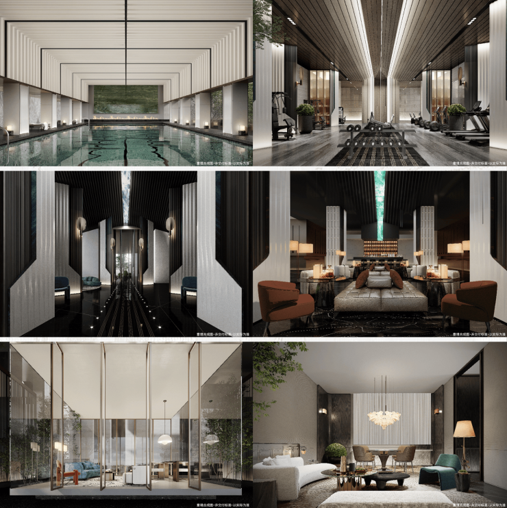 会所内配置有会客厅、咖啡厅、棋牌室、室内恒温泳池、健身中心,满足高端圈层会客、交友等日常需求。