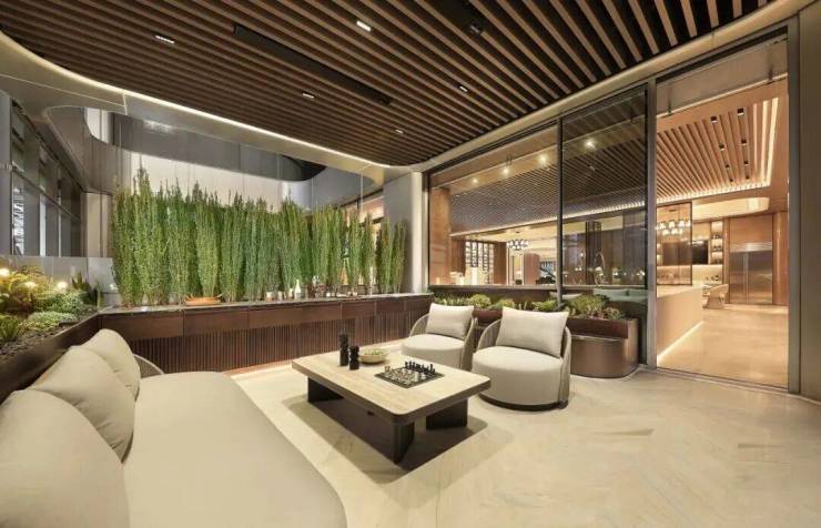 同样让人放松宁静的,还有空中花园,有别于其他大平层只能阳台种花,EIC的空中花园是三面临空的,因此就会有更好的通风采光,围坐在郁郁葱葱的绿植旁,来一场烧烤party。甚至东边套户型还有双层挑空的花园,在寸土寸金的奥体核心区,能够拥有自己的一方天地,得有多珍贵。