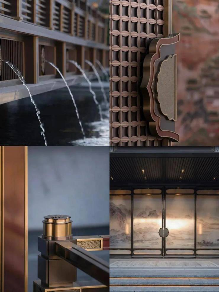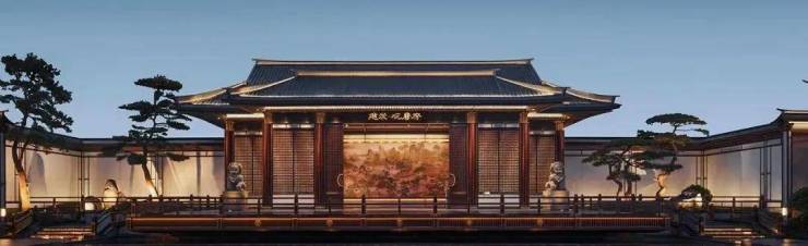 【新中式美学典范】观唐府,灵感源自唐代山水园林的精髓,巧妙借鉴《辋川图》的意境,以“三进十景”的布局,重现了古代文人墨客心中的理想居所。第一进,名曰“辋川入画”,宏大的唐风大门巍然矗立,面宽逾四十米,高约九米六,重檐歇山顶的设计,尽显尊贵与典雅,让人一踏入府邸,便仿佛穿越千年,步入了一幅流动的山水画卷。