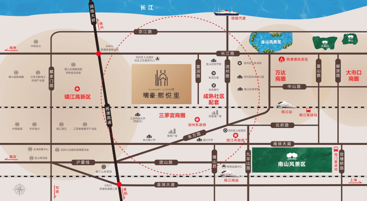 交通便利:邻近长江路主干道,距镇江火车站、高铁站约5公里,周边有扬溧高速、润扬大桥等交通节点,出行便捷。