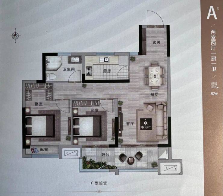 建面约82㎡两室两厅一卫户型↓↓↓