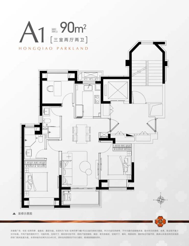 「约90㎡ 3房2厅2卫」