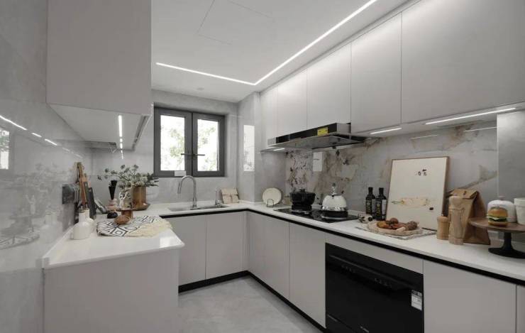 厨房空间适配真实烹饪动线,配置直饮净水器、大单槽、360°抽拉龙头等。油烟机采用