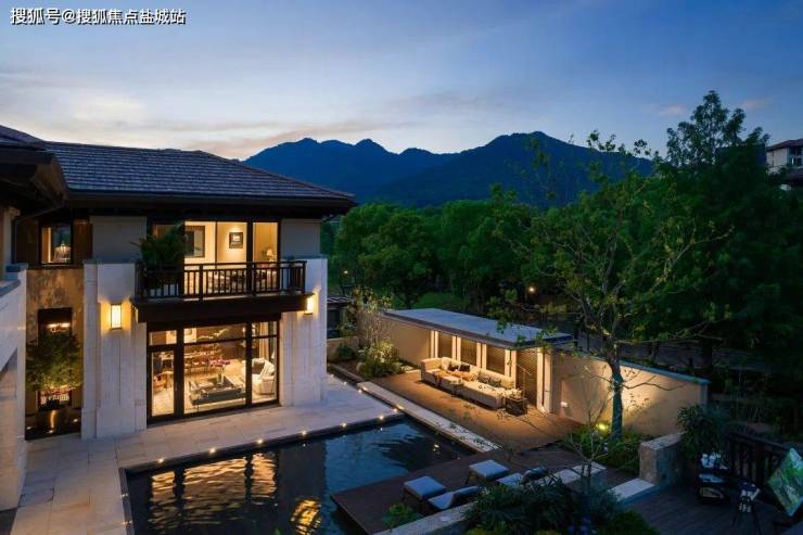 一层的平面是「曲尺型」的布局,客餐厅之间以游廊相连,客厅与餐厅以斜45°角的对望关系存在, 中间以内庭水景相隔,巧妙地解决了室内与室外之间的渗透关系。它能带给你心灵上的自由、行动上的自由,这才是真正住别墅的一种意义。