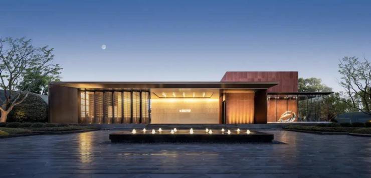 再看大门的选材与工艺,更是值得细细品味。入口景墙采用葡萄牙米黄石材,两侧墙体为红砂石干挂,采用流水面立面工艺,处处可见匠心。