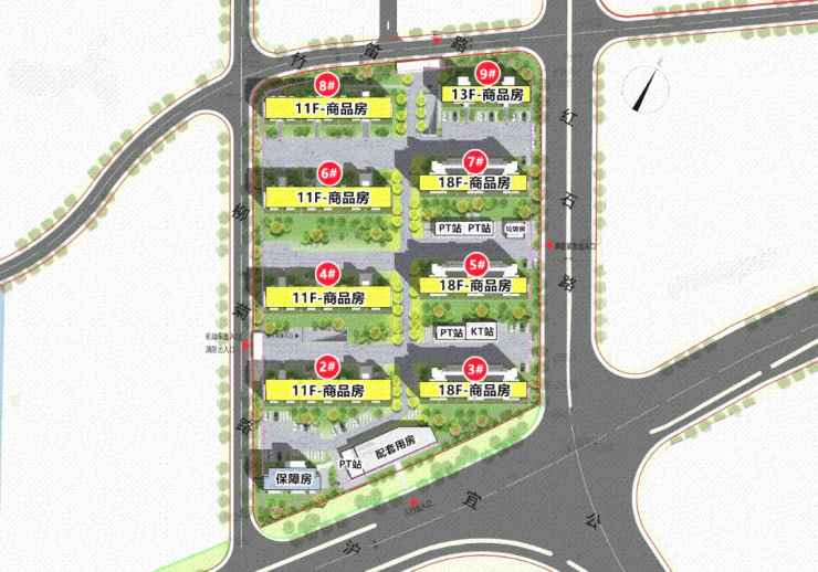 根据项目规划设计方案公示,拟建4栋11F小高层住宅、1栋13F高层住宅、3栋18F高层住宅、1栋保障房以及配套用房。