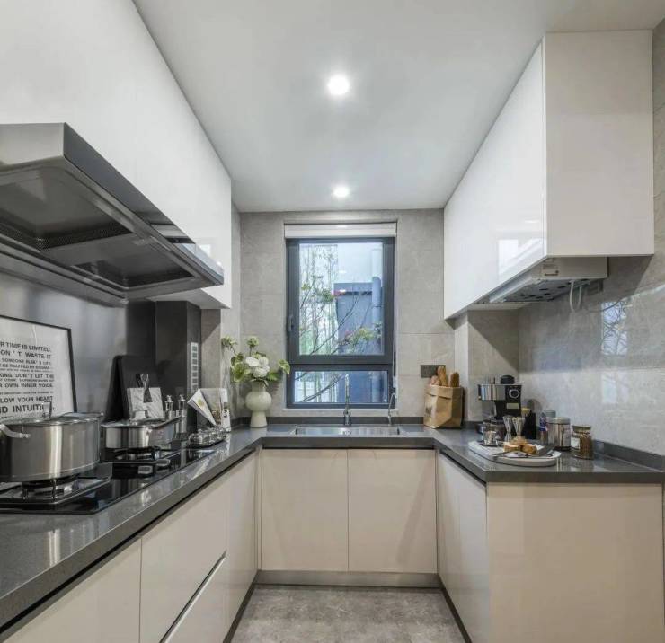 U型厨房, 售楼处电话☎:400-000-0460转6666【预约☎】符合人体工学的流程动线,可供2-3人同时操作的空间,让每一位“煮”人,都能从容沉浸于烹制佳肴的快乐。