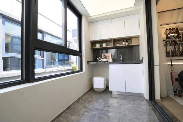 玄关、卧室、餐厅、卫浴、厨房、飘窗、阳台等空间维度打造全屋收纳系统,保持空间的整洁美观。甚至连阳台的家政柜也是交付标准。