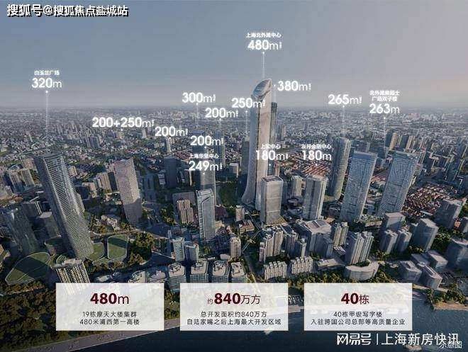 北外滩的规划体量达到840万平方米,自陆家嘴之后上海最大开发区域。这里,将建设480米高的浦西第一高楼——上海北外滩中心,未来将携19栋摩天大楼集群共筑上海崭新天际线。