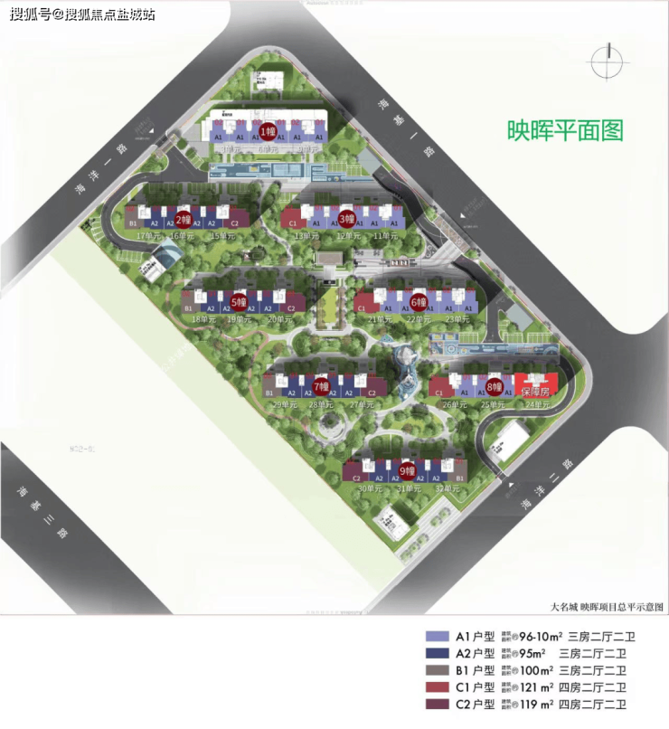 【大名城·映玥】此次推出主力户型为建面约84-96㎡(3房)的洋房,1梯2户私密设计,容积率低至约1.2,建筑密度约21.65%,车位配比1:1.1。