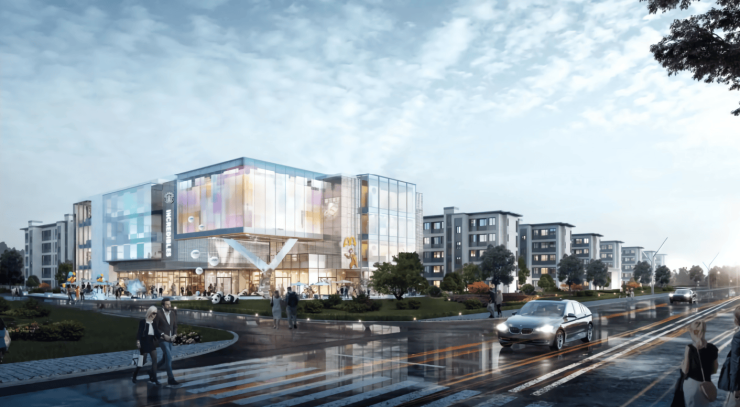 聚焦国际审美,外立面采用米白色石材/真石漆+大面积超白玻璃,搭配浅灰色铝板、百叶,营造高级质感,彰显自由开放的现代感与艺术感。