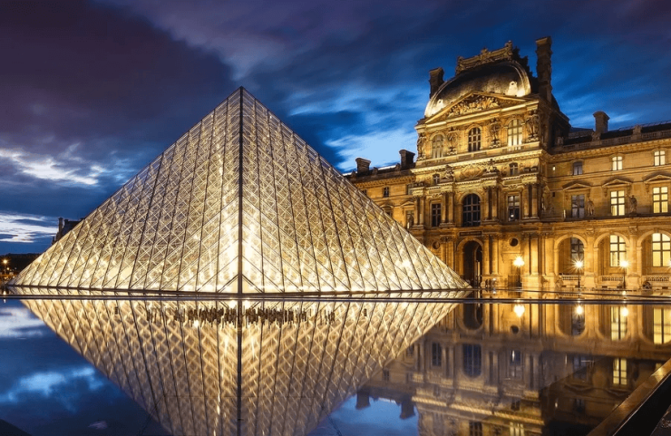(巴黎罗浮宫金字塔实景图)