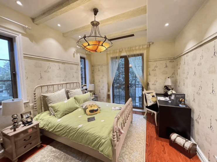 采用美国南加州的建筑风格,外立面采用淡黄色的手工Stucco抹灰外墙和红瓦屋顶,将原汁原味的南加州风格复制至此,同时融入原木、三色瓦片、红砖、铁艺、各式烟囱等元素,渗透一砖一瓦,仿佛置身异国小镇。