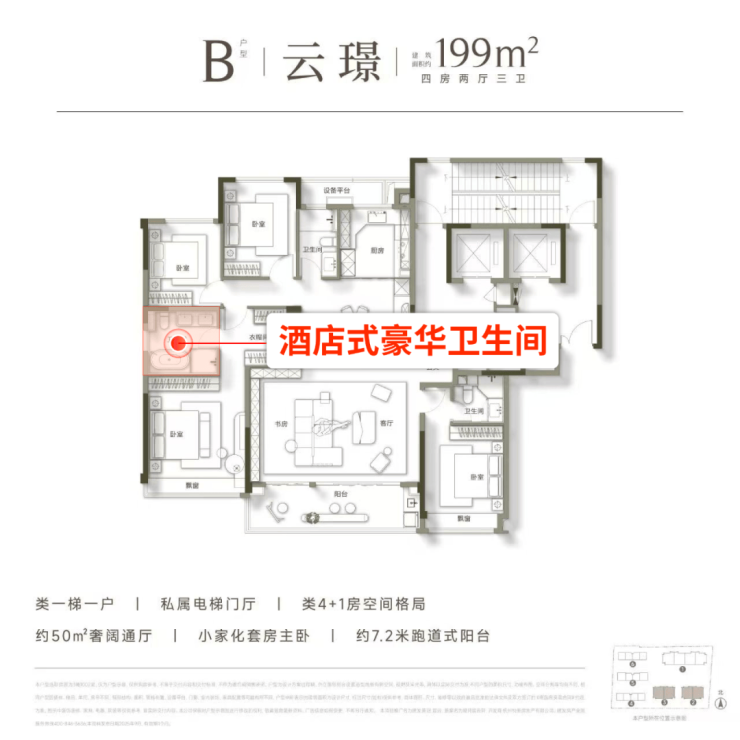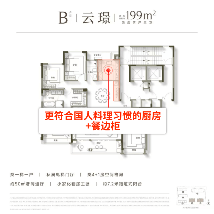 即将加推的建面约199方B户型,是世纪城首屈一指的神户型,装修更是碾压级: