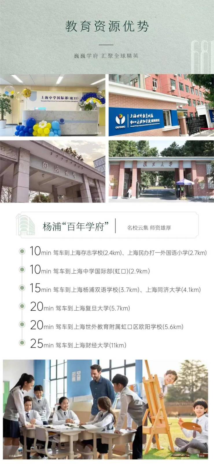 15min 驾车到上海杨浦双语学校(3.7km)、上海同济大学(4.1km)