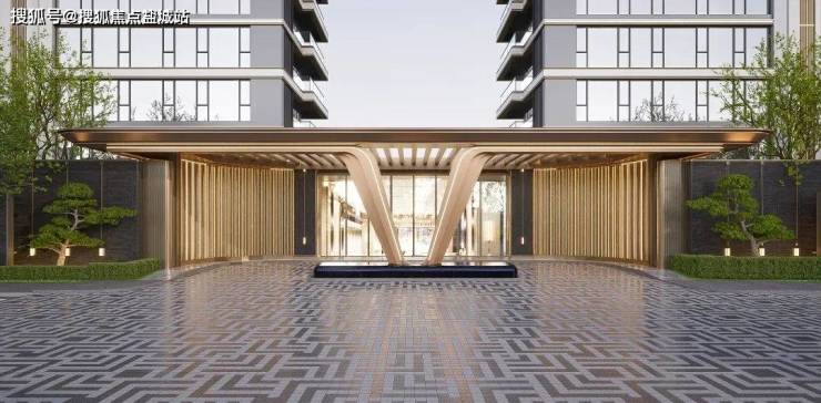湖畔壹号的小区大门是一座府型门制,前方设置水景,形成酒店式环岛落客区。另外,打造高定车库门头、精装入户大堂等,高定生活的仪式感,由内至外。
