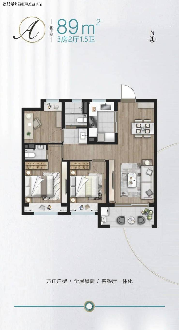 建面约89㎡做3房,功能性上就占尽先机,没想到项目还有1.5卫配置,主卧升级套房,真正实现一步到位!