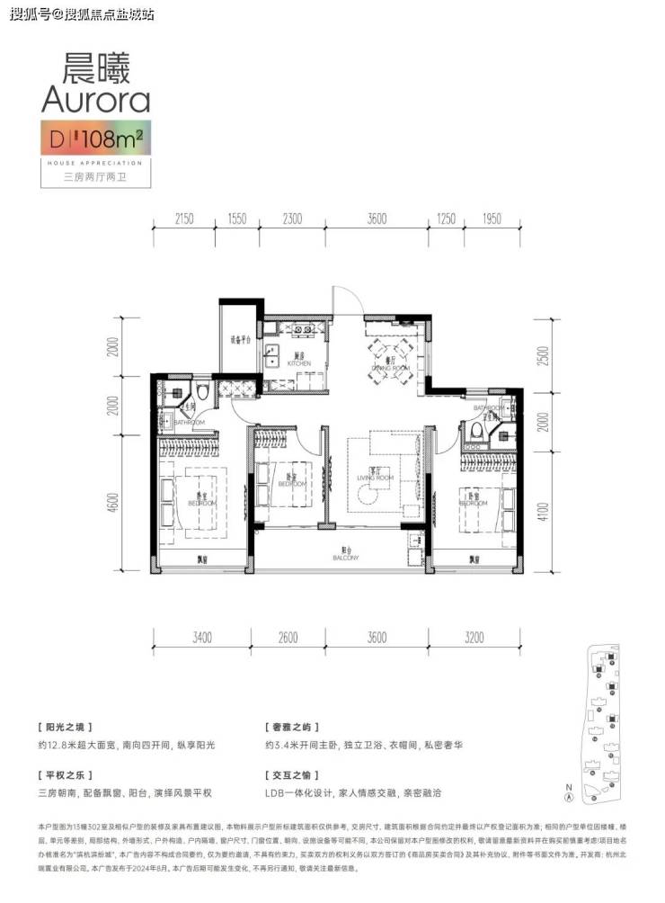 想要尺度感的,可以选建面约108方大三房,居然做到了四开间朝南,非常少的吧?