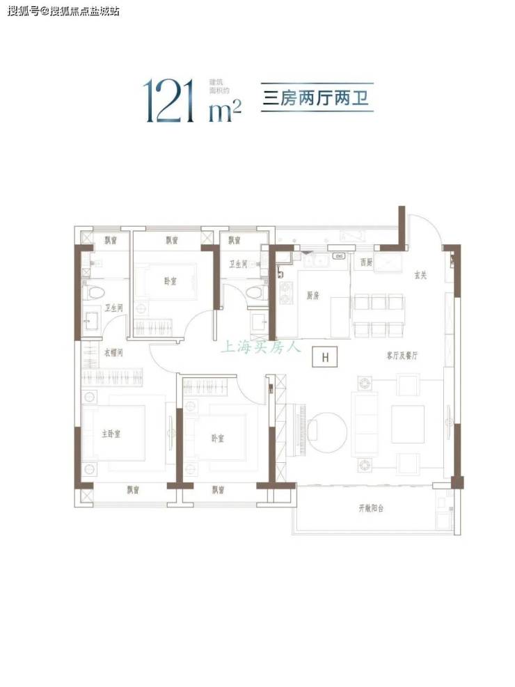 户型总结:3开间朝南,全屋阳光充足;L型厨房转角移门设计,最大化空间视野;四飘窗设计,通透空间享受;动静分区,亲密有度;套房式主卧,容纳私谧生活点滴;