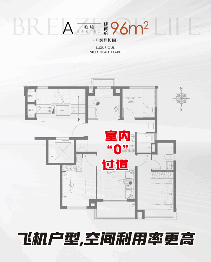户型三开间朝南、室内“3个飘窗+1个270°采光窗面+1阳台”、再加上“2卫”的设计,不管是采光、视野、通风、私密性,还是实用性都十分出色。
