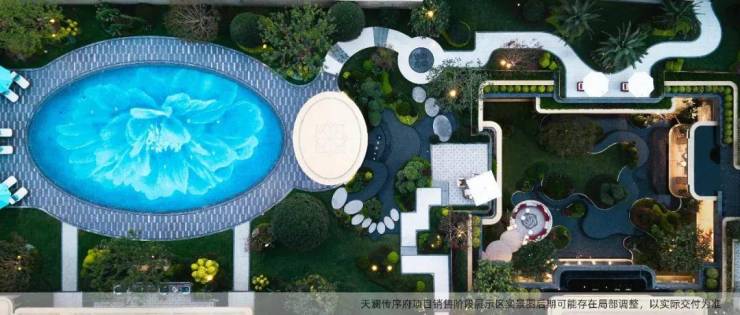5.滨江专属IP“蓝宝石”水池,池底以马赛克拼接Dior 挚爱的芍药,高定诗意