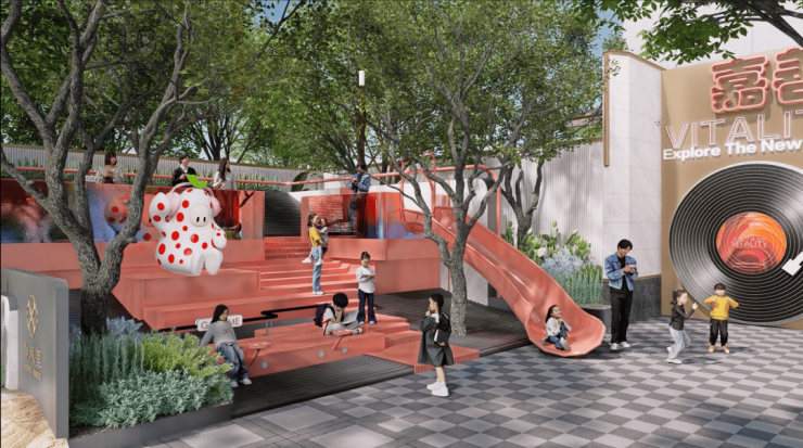 作为社区生活客厅,壹里繁华的设计源于对当代人“既想离尘又想入世”的洞察——网红打卡点满足分享欲、林下戏水广场装得下夏日的欢笑、转角商业街区藏着咖啡香与菜摊的热闹、周末市集的烟火气里飘着手作的温度。生活不必在“远方”和“眼前”间取舍,下楼即享的,就是更美好的。
