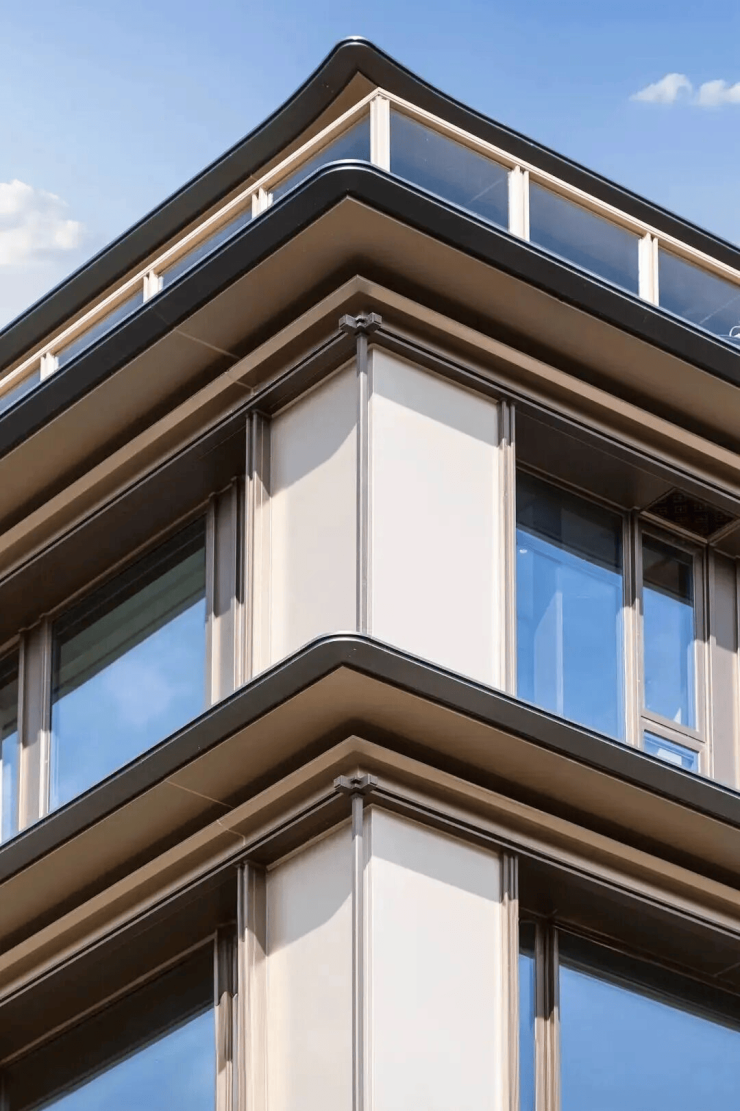 采用3.0mm厚标准铝板,强度高、抗变形、平整耐候。表面氟碳喷涂,耐候性强,分缝无胶化处理,避免传统打胶易出现的起泡与变色问题,保持立面长期整洁如新。
