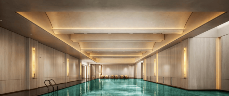北会所主打健康生活,配备恒温泳池、专业健身房、瑜伽室等,以低密、静谧的环境为业主提供日常康体服务。