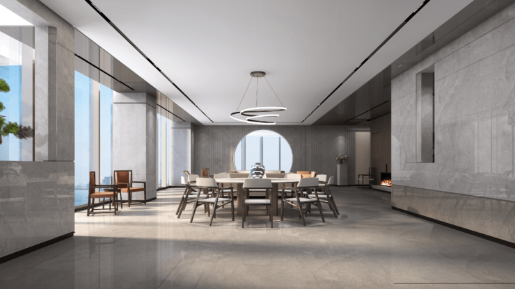 望廷建筑景观融入松竹莲石等东方景观元素,力求彰显当代建筑的禅意之美。搭配典雅的外立面,一种中西融合的生活意境油然而生。在室内空间建造上,以东方的理念,西式的表达,诠释东方摩登美学人居,IMAX阔厅观景空间,通透大气的居住体验,最大还原奢宅原貌;超豪华连厅,营造全球生活家的社交舞台。