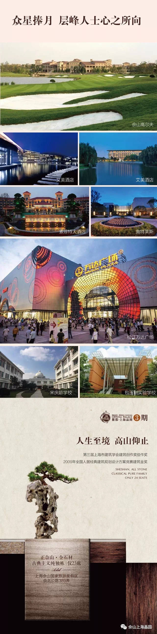 佘山•上海晶园位于佘山旅游度假区纯独栋豪宅社区核心位置,坐享“佘山国家森林公园、月湖雕塑公园、欢乐谷、广富林文化公园、辰山植物园”五大4A级景区。