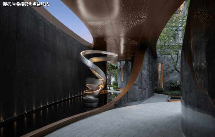 从园区入口开始,绿城·凤咏朝阳便展开优雅尊贵的生活礼仪。主入口超长雅趣门厅,取意“退隐”的艺术之意,通过横向延长的约80米长庭,柔化过渡与城市的界限,转身便愉悦在沐光悠廊、迎宾礼仪水景的视觉观赏中,进而投身到艺术会所的“心灵的疗愈”里。