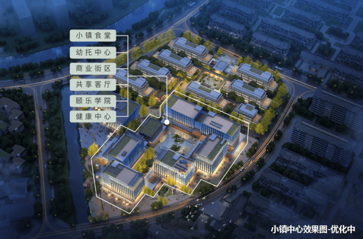 灵感源于上海老街区永平里和杭州天目里,广场和连廊空间串联多彩生活,约1.8万方小镇中心,包含有约5600方生活配套,设有小镇食堂、幼托中心、商业街区、共享客厅、颐乐学院、健康中心等。