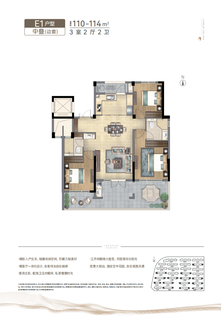 将新亚洲元素植入现代建筑语系,坡屋顶、深挑檐中式元素,采用大面蓝灰色LOW-E玻璃,大面宽、大开间、全明通透的湖景洋房,以“中央空调+新风系统+地暖”全系精装交付,诠释洋房生活的格调。