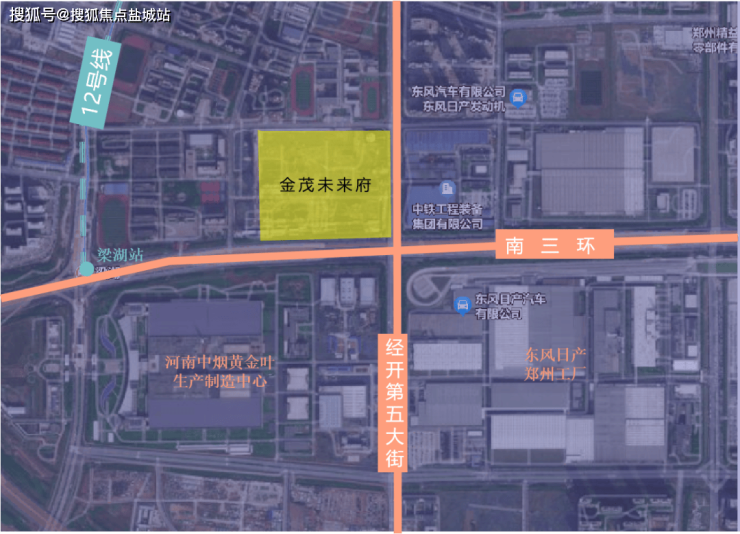 诚园向南3公里就是金茂未来府,南侧临南三环,对望是黄金叶厂、东风日产厂区,东侧又是中铁装备,经开区毕竟是一个开发区,可以说也是穿插于工厂间,好在对面的几所学校以及已经交付的小区给这里带来了一些居住环境。
