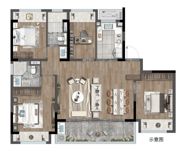 中国铁建·花语天辰的不同户型满足二孩、三孩、三代等不同阶段家庭需求。星级套房式主卧,奢配南向宽奢飘窗、卫生间、卫浴、步入式衣帽间、化妆台等研磨每一寸空间,结合私密与舒适,兼顾功能性与体验感。全能四房空间百变多元化,可以根据居者需求将另一间改造成太太的健身房、孩子的儿童乐园、先生的办公室,老人的茶艺室等。苏州难得的科学空间布局,让家人生活更加自由舒展。