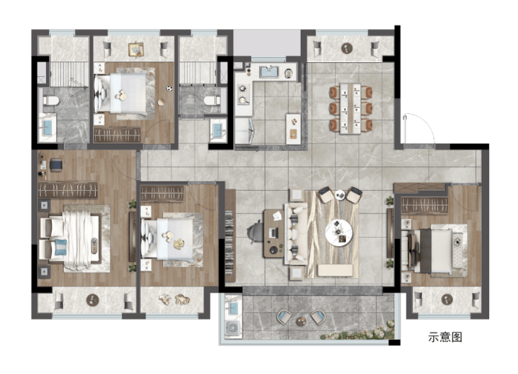 E户型:【建面约173 ㎡】4+1房两厅三卫