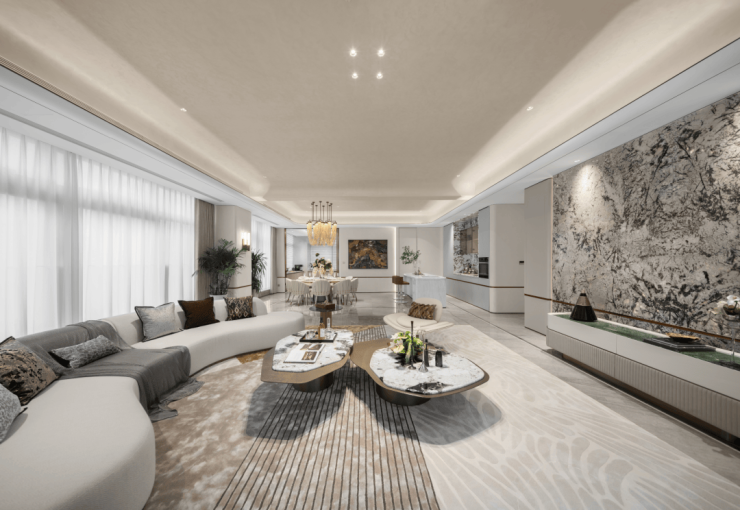 珍贵的土地,值得涵养高贵的生活。在建筑面积约410㎡样板中,大师设计精琢奢华的本象,在层高4米的朗阔场域中,打造270°巨幕观江视野,超大LDK家庭社交中心,为未来居者盛载流动且美好的生活情境。