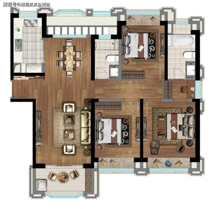 建面约135㎡3房户型,三开间朝南全明通透户型,客厅、南向次卧、主卧三大功能空间均饱揽阳光,让阳光与空间和鸣。