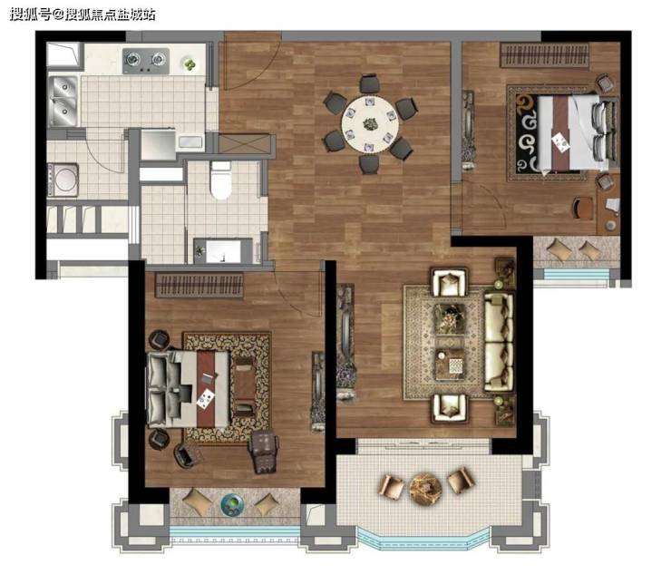 建面约95㎡2房,创新户型,全明设计。在一体化设计的客餐厨阳台中,一家人平时聚在其中,无论是坐在沙发上歇息、在厨房中烹饪、在饭桌上吃饭,窗外的风景都是生活的点缀。